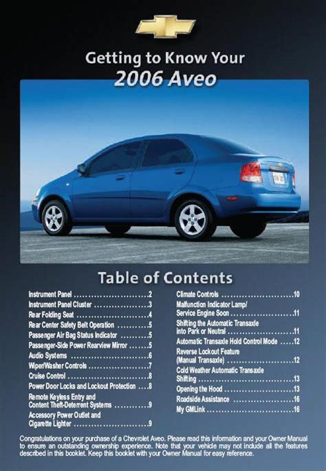 Online PDF 2006 Chevrolet Aveo Owners Manual Reader Gutenberg